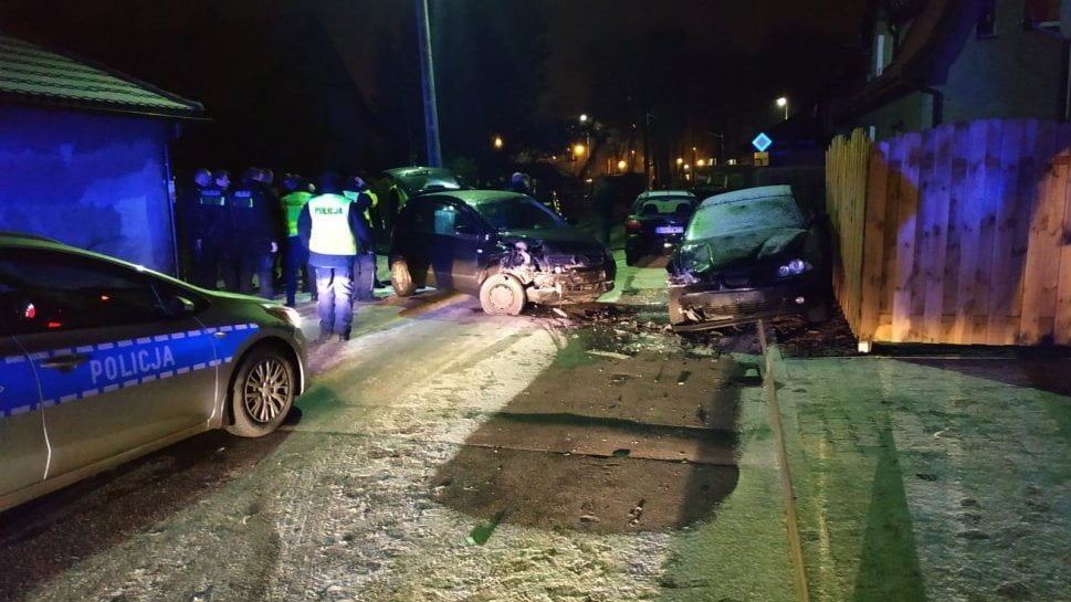 Ostatecznie ucieczka zakończyła się w Knurowie na ul. Mickiewicza, gdzie uciekinier stracił panowanie nad pojazdem i uderzył w parkującego prawidłowo seata oraz peugeota. Mężczyzna został zatrzymany i przebadany alkomatem oraz narkotesterem – był trzeźwy, nie wykryto też w jego organizmie narkotyków.