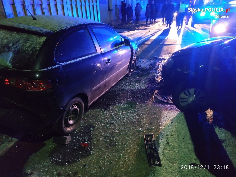 Policyjny pościg za kierowcą, który nie zatrzymał się do kontroli miał początek w Gliwicach na ulicy Pszczyńskiej, a zakończył w Knurowie, gdzie mężczyzna nie zapanował nad samochodem i zniszczył zaparkowane przy drodze auta. Nie miał prawa jazdy.