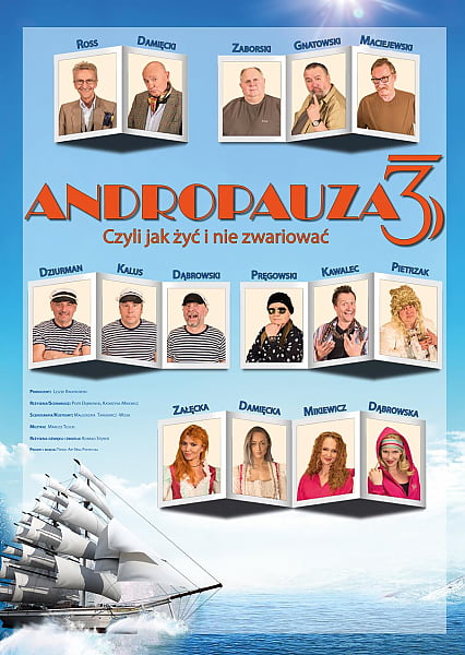 “Andropauza 3 – czyli jak żyć i nie zwariować ” to opowieść o tym, że prawdziwe życie zaczyna się po sześćdziesiątce! Że nie ważna jest ilość zer przy liczbie twoich lat przeżytych, ale radosne i otwarte serce! Jeden z naszych bohaterów, po nieprawdopodobnej przygodzie, która odmieniła na dobre jego życie, krzyczy ponad oceanem: “Teraz dopiero zaczynam żyć!!!!!” Bawcie się, śmiejcie się i płaczcie razem z nami, w myśl refrenu pieśni finałowej: