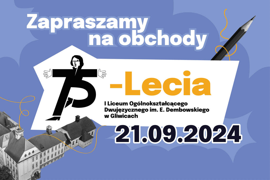 Obchody odbędą się 21.09.2024 w I Liceum Ogólnokształcącym Dwujęzycznym im. Edwarda Dembowskiego, ul. Zimnej Wody 8, Gliwice. Udział w obchodach jest bezpłatny. Osoby, które chcą otrzymać upominki (monografia, kubek, koszulka, znaczek) i wesprzeć organizację uroczystości, proszone są o wpłatę minimalnej kwoty 150 zł na konto Stowarzyszenia na rzecz rozwoju I Liceum Ogólnokształcącego Dwujęzycznego im. E. Dembowskiego w Gliwicach „Jedynka”, z adnotacją zawierającą imię, nazwisko oraz rok ukończenia szkoły.