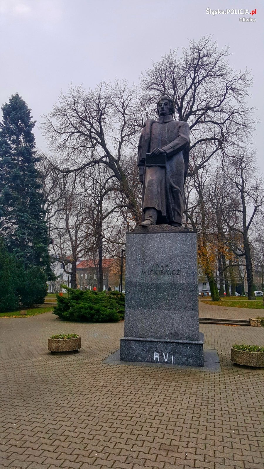 Do nietypowej sytuacji doszło we wtorek około 15:30. Pewna gliwiczanka zainteresowała się starszym mężczyzną, który, stojąc pod pomnikiem Adama Mickiewicza zaczął nanosić na niego napis białą farbą. Kobieta powiadomiła policję.