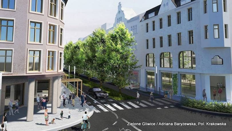 Chociaż praca nie ma żadnych szans na realizację, warto zobaczyć centrum w zielonej odsłonie, chociażby jako głos w dyskusji nad kształtem planowanych właśnie zmian na ul. Zwycięstwa. (mf)