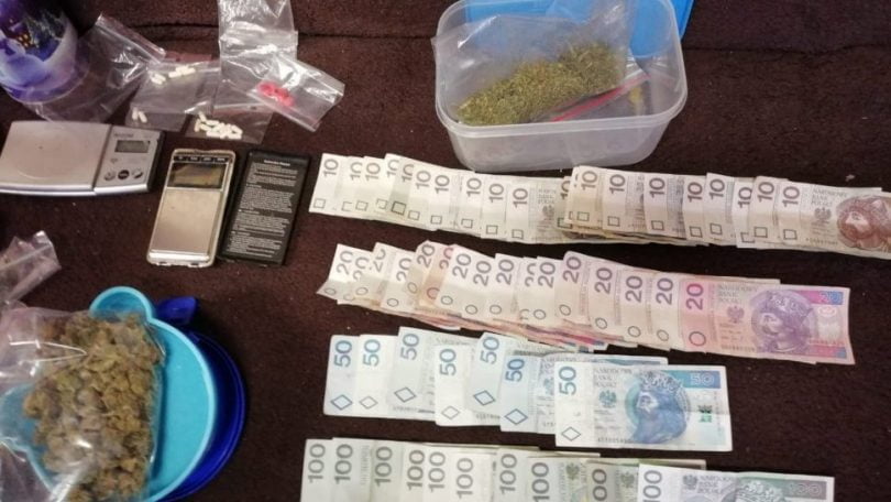 Kryminalni dokonali przeszukania z wykorzystaniem psa specjalizującego się w wykrywaniu niedozwolonych środków. Znaleźli również wagi elektroniczne i zabezpieczyli prawie 2 tys. zł w drobnych banknotach. Zatrzymano dwóch mężczyzn w wieku 22 i 24 lat. Sprawa należy do rozwojowych.