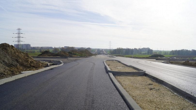 Obwodnica zachodnia na odcinku od ul. Daszyńskiego do ul. Rybnickiej nabiera kształtów. Na trasie głównej wykonawca prowadzi już odcinkami roboty bitumiczne związane z wykonywaniem warstw nawierzchni jezdni.