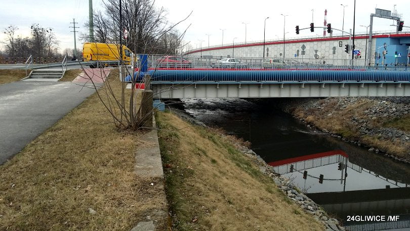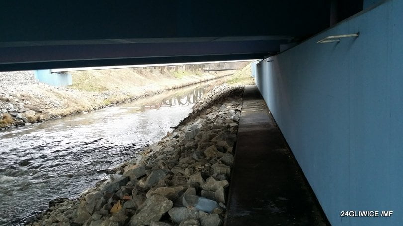 Pomysł naszego Czytelnika sprowadza się do wybudowania na końcu alejki zejścia prowadzącego pod mostem, bezpośrednio nad Kłodnicą, z ominięciem ruchliwego skrzyżowania. Sprawdziliśmy i rzeczywiście, pod mostem dałoby się przeprowadzić takie przejście, wysokość (czego nie widać na zdjęciach) od betonowego pasa do stropu to ponad 2 metry, platformę można jednak usytuować obok, jeszcze niżej. Pozostaje jednak kwestia zgodności z obowiązującymi przepisami i co najważniejsze, bezpieczeństwa. Co na to urzędnicy? Może to pomysł wart rozważenia?