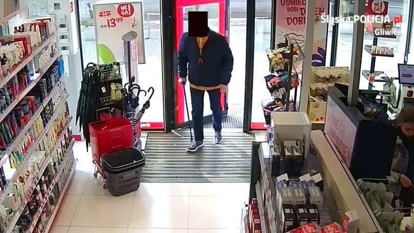 Mężczyzna, którego zdjęcia z (na razie) zamazanym wizerunkiem prezentuje policja, przygarnął cudzy portfel pozostawiony przez roztargnienie w drogerii Rossmann przy ul. Wojska Polskiego. Na pewno rozpozna się na fotografii. Ma szansę na naprawienie szkody.