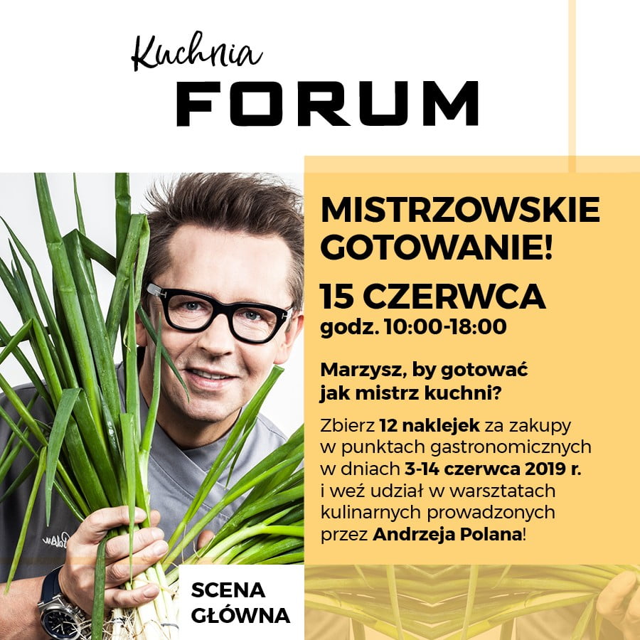 Centrum handlowe Forum zaprasza na ucztę ze znanym szefem kuchni – Andrzejem Polanem. Kulinarny mistrz pojawi się tam w sobotę, 15 czerwca (w godzinach 10:00 – 18:00) i wykona na żywo aż siedem popisowych dań.