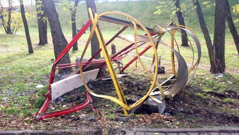 Przybyły patrol drogówki zastał na miejscu porzucone audi a6, leżące na lewym boku, oraz zniszczoną wiatę i betonowy śmietnik. Policjanci szybko przejrzeli zapisy z kamer monitoringu. Na jednym z filmów zobaczyli, jak na łuku drogi kierowca audi traci panowanie nad autem i sunąc bokiem, zjeżdża z jezdni, a potem, przewracając się, z impetem zmiata przystankową wiatę.