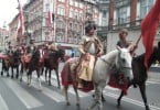Husaria na koniach, w pełnym rynsztunku przejechała...