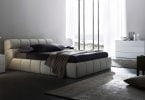 Modna sypialnia na wiosnę. Miękkie łóżka i meble, oaza...