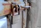 Jadłodzielnia zamknięta, na bramie wisi kłódka. W...