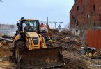 Prace rozbiórkowe na terenie dawnej huty szkła...
