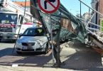 Rusztowanie runęło na chodnik i zaparkowane samochody...