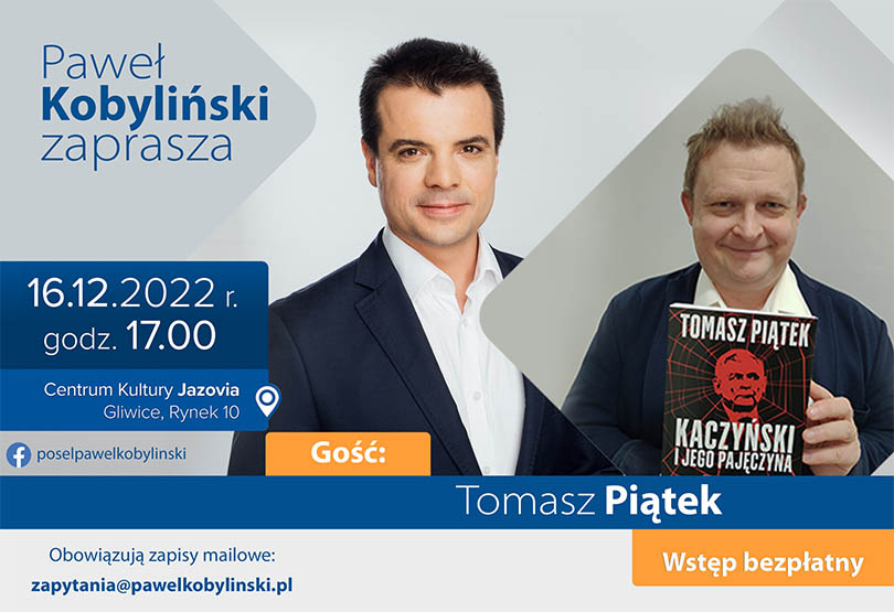 16 grudnia spotka się z Pawłem Kobylińskim o godzinie 17:00 w Centrum Kultury Jazovia w Gliwicach (Rynek 10). Wstęp na spotkanie jest bezpłatny, ale obowiązują zapisy mailowe: zapytania@pawelkobylinski.pl.