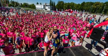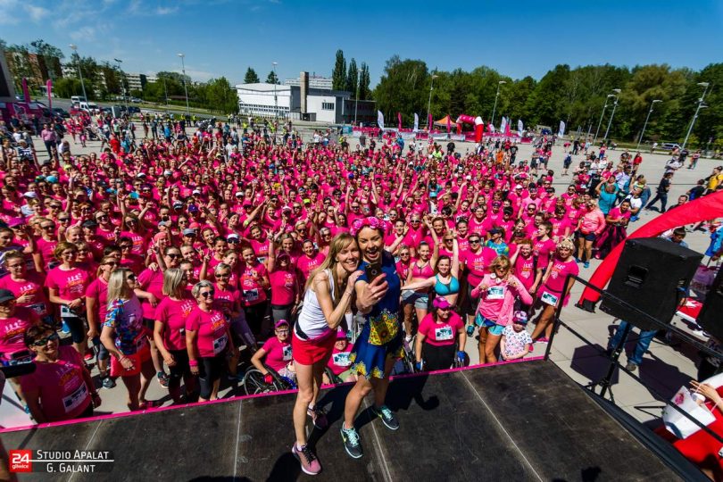 Zgodnie z zapowiedziami, bieg w ramach imprezy biegowej na rzecz walki z rakiem piersi rozpoczął się ok. godz. 12.00. Kilkaset uczestniczek spotkało się przy Arenie Gliwice, gdzie jeszcze przed startem rozpoczęła się rozgrzewka.