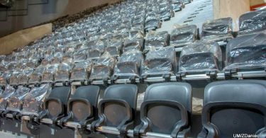 W Hali Gliwice rozpoczął się montaż 14 tysięcy szarych krzesełek, na których w...