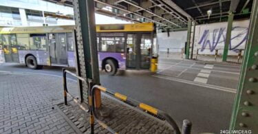 Linia zatrzymania pod wiaduktem nad ulicą Piwną znajduje się w takim miejscu, że autobusy...