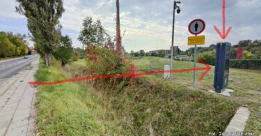 Elektroniczny wyświetlacz w polu i przy zakazie wejścia dla pieszych...