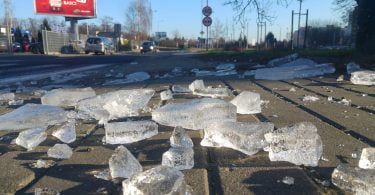 Z ciężarówek spadały nawet 15-kilogramowe bryły lodu. Policja:...
