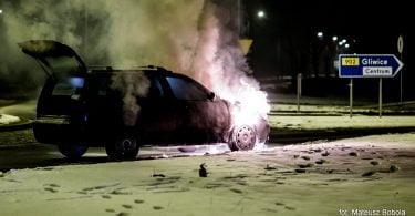 Około godz. 17.45, na rondzie przy zdjeździe DTŚ (ul. Królewskiej Tamy) płonął samochód...