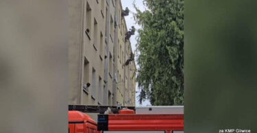 Pod blokiem rozpięto specjalną poduszkę, która miała uchronić mężczyznę w razie skoku z...