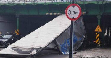 A jednak się nie zmieścił. Ruch wahadłowy pod wiaduktem w ciągu ulicy...