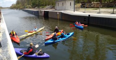 Kajakarze przepłynęli Kanałem Gliwickim. Pokonanie śluzy robiło...