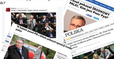 Poseł Piotr Pyzik został ukarany upomnieniem za pokazanie w trakcie posiedzenia Sejmu...