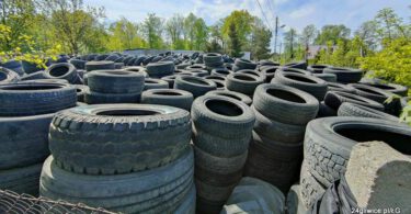 Składowisko opon między domami jednorodzinnymi. Działa legalnie...