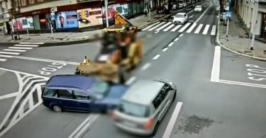 Koparka zmiotła passata. Groźnie wyglądająca kolizja na skrzyżowaniu...
