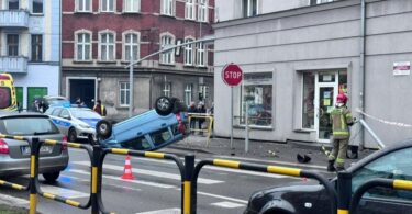 Dachowanie na skrzyżowaniu w centrum Gliwic. Uszkodzona sygnalizacja...