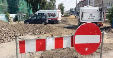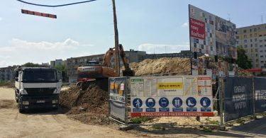 Fragment zaniedbanego placu przed nowo budowanym biurowcem dotychczas służył kierowcom za...