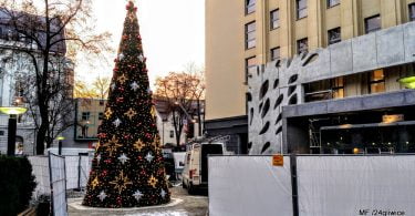 Zupełnie nowe drzewko świąteczne pojawiło się przed remontowanym Urzędem Miejskim, w...
