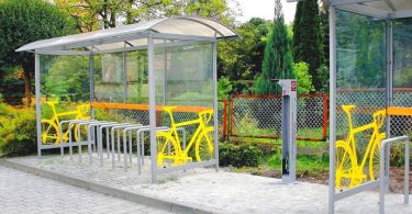 Stacja do naprawy rowerów pod nazwą Cyklo-Majster stanęła obok wiat rowerowych na...