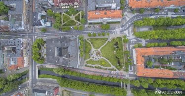 Widok z lotu ptaka na skwer Doncaster i budynek Urzędu Miejskiego. fot. Mosquidron...
