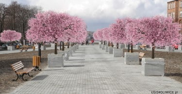 Zakwitły wiśnie… na razie tylko w komputerze naszego grafika. Na skwerze nad...