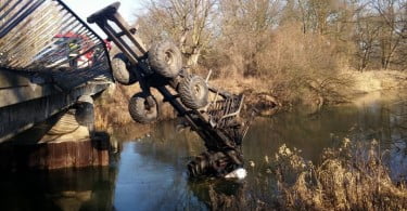 Po pijaku wpadł ciągnikiem do Kłodnicy. Świadek uratował mu życie