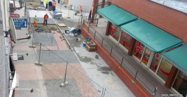 Trwa układanie kostki brukowej na ulicy Basztowej, w miejscu, gdzie podczas prac...