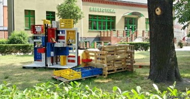 Palety i pojemniki – letnia czytelnia pod chmurką
