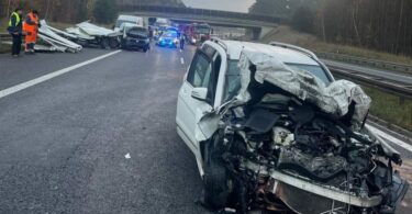 Zderzenie trzech pojazdów na autostradzie A4. Jedna osoba trafiła do...