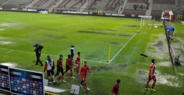 Piłkarze Piasta tonęli w wodzie, mecz przerwany. Boisko zamieniło się...