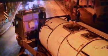 Zaklinował cysternę pod wiaduktem na ul. Piwnej. Zobacz nagranie z...