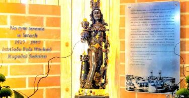 Pamiątkowa kapliczka z figurą św. Barbary, która stoi przy nieczynnym już polu Wschód KWK...