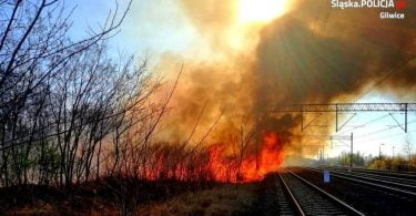 Patrol drogówki spostrzegł pożar nieużytków pomiędzy gliwickim przedsiębiorstwem...