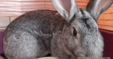 Nie zając, ale duży królik hodowlany biegał przy jednej z ruchliwych gliwickich ulic...
