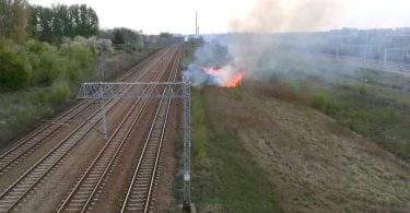 Wzdłuż torów kolejowych w rejonie Portu i Estakady Jana Heweliusza ktoś podpalił trawy...