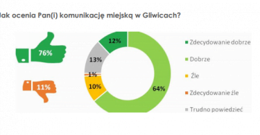 Dla przykładu, aż 76% badanych pozytywnie ocenia komunikację miejską w Gliwicach, 90% respondentów czuje się w mieście bezpiecznie, a 65% uważa, że jest ono przyjazne dla seniorów.