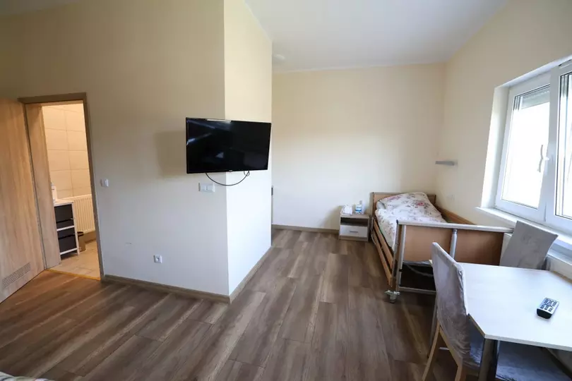 Pensjonariusze mieszkają w komfortowych pokojach trzyosobowych wyposażonych w łazienkę przystosowaną do potrzeb osób niepełnosprawnych.
