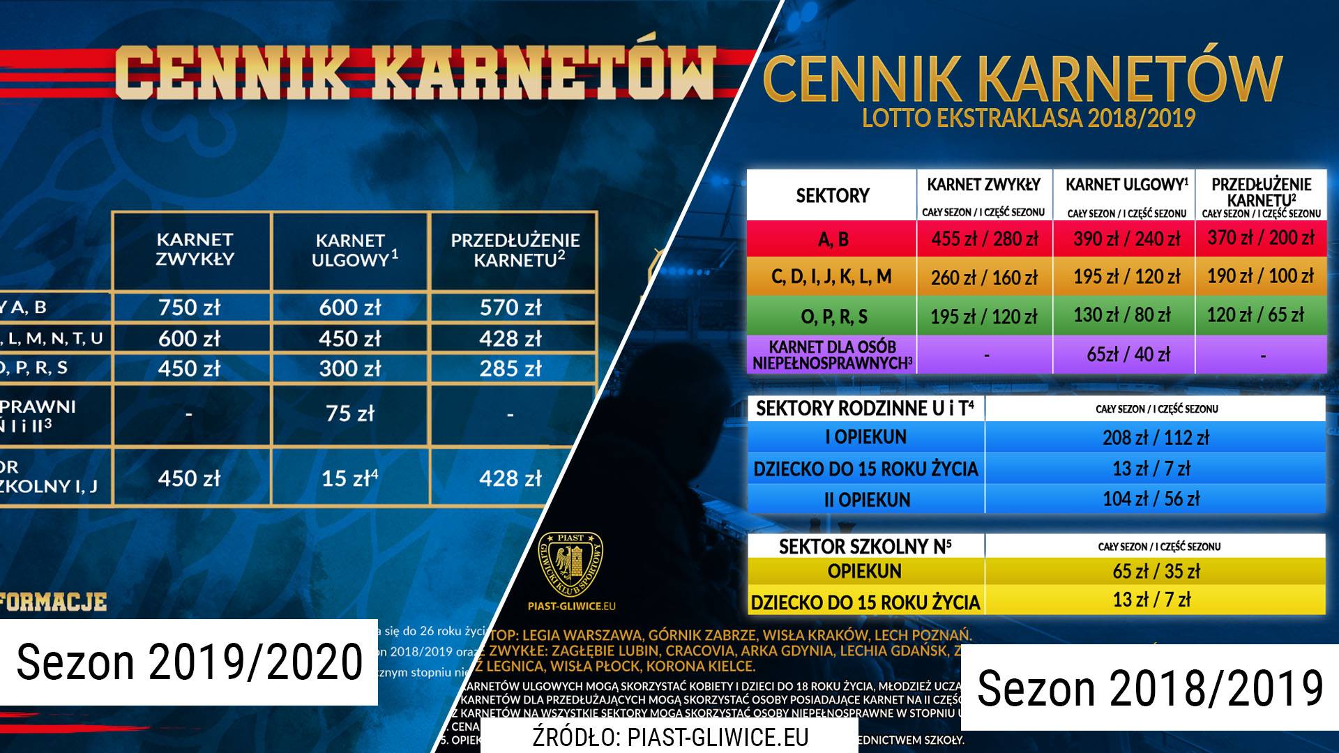 Piast Gliwice opublikował cennik karnetów na wszystkie mecze domowe drużyny w sezonie 2019/20. Cena za przedłużenie stałej wejściówki mocno wzrosła w stosunku do ubiegłego sezonu. W przypadku nowych karnetowiczów można mówić nawet o ponad dwukrotnej podwyżce.