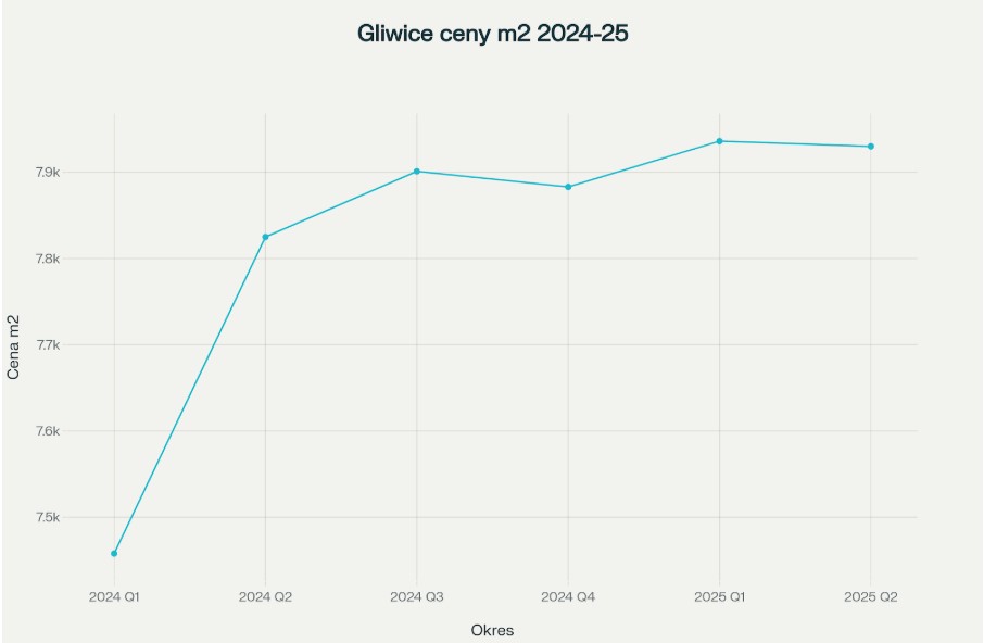Średnie ceny mieszkań za m² w Gliwicach w latach 2024-2025